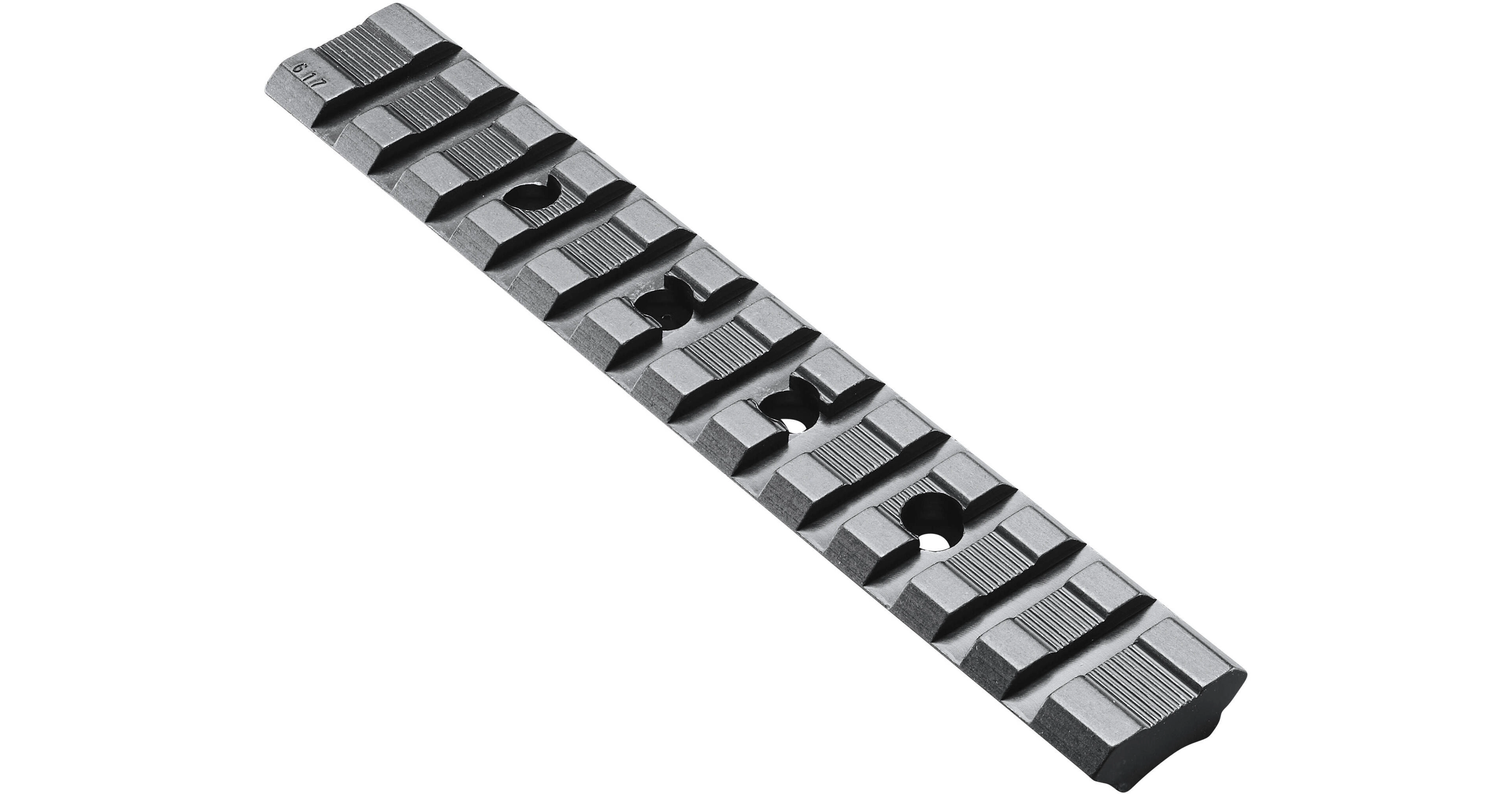 • PICATINNY (RIS / MIL-STD-1913): Modernější systém, plně standardizovaný, s jednotnou roztečí 5,23 mm, hlubšími drážkami a vyšší kompatibilitou.
