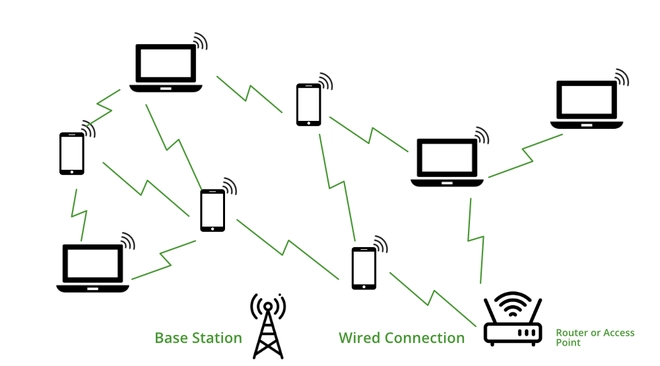 • Přenos paketů: Data jsou rozdělena na malé balíčky a odesílána rádiovou cestou.