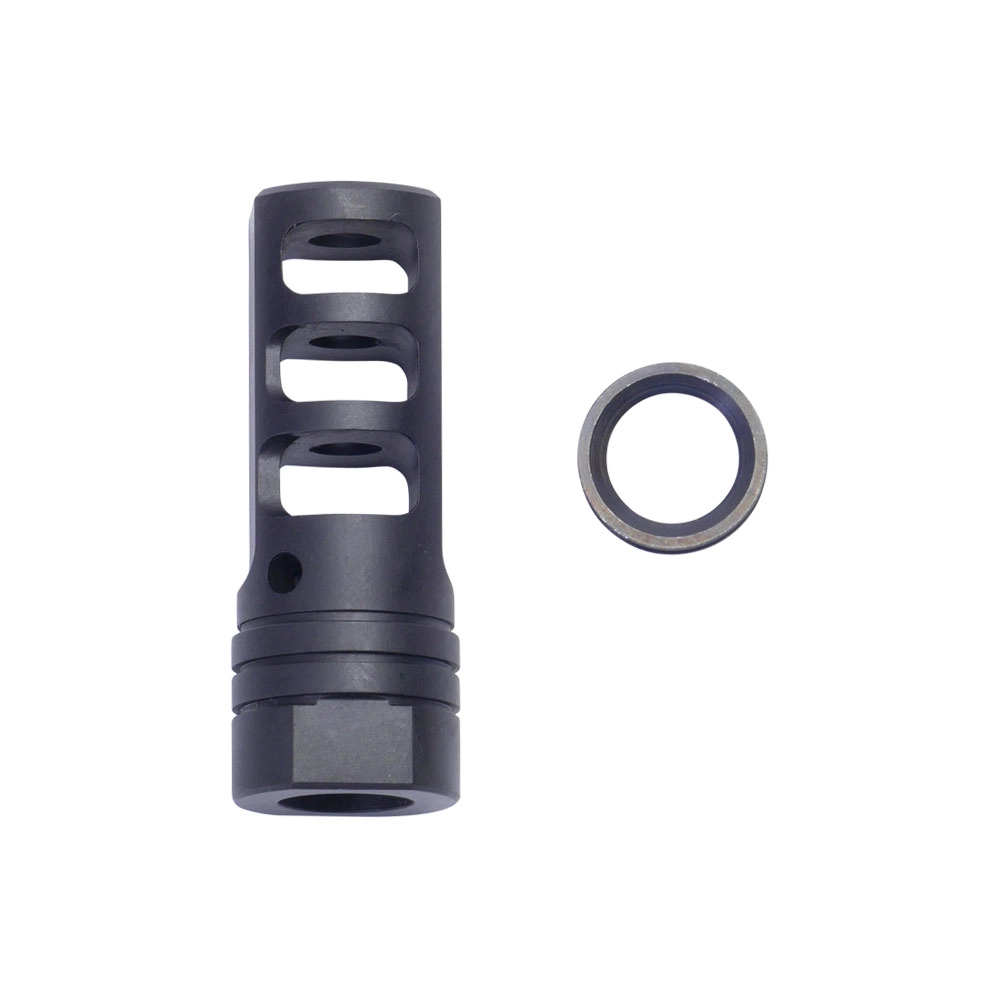 Redirects gases sideways or backward to reduce recoil. Enhances comfort when shooting larger calibers, but also increases noise for those nearby.