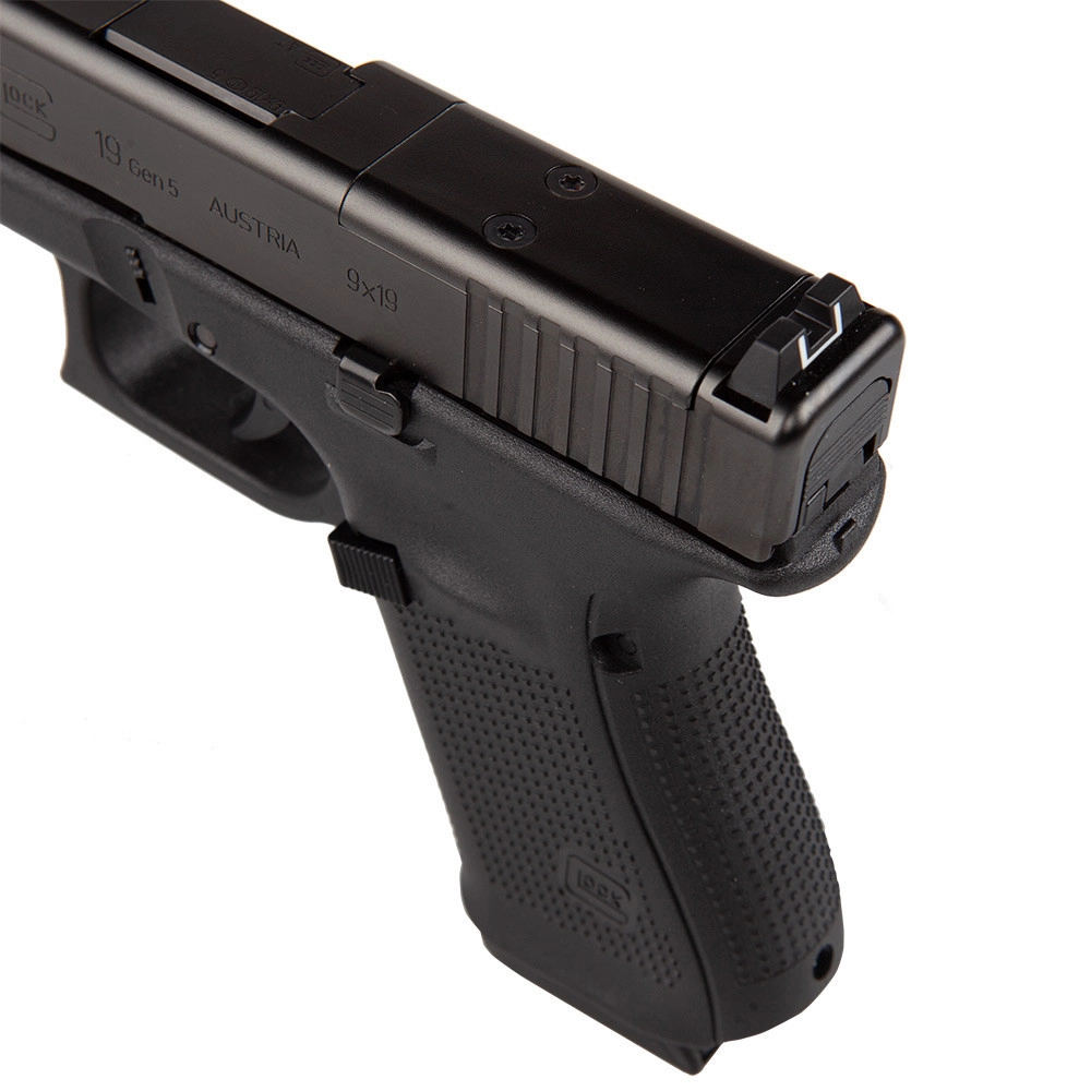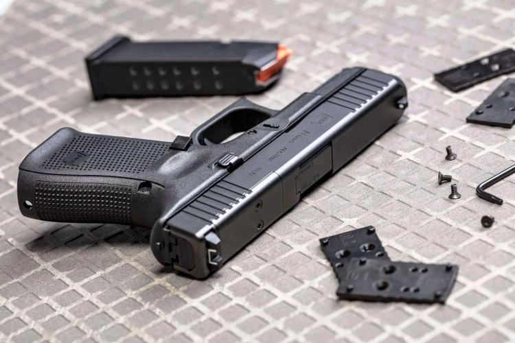 • The slide is often configured so that iron sights remain functional when using a red dot (co-witness).