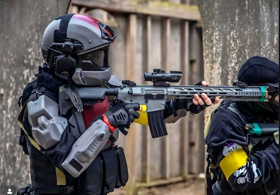 Airsoftový hráč se cyberpunk výbavou (IG: Masterlemans)